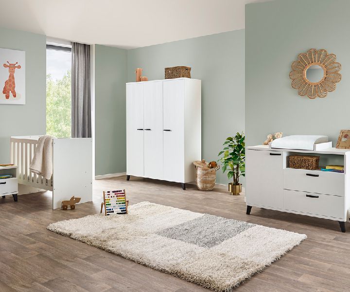 Met de standaardopstelling van de kamer Evy Structuur Wit, haal je de basis in huis voor je nieuwe kinder- of babykamertje. Deze standaardopstelling van het merk NEYT is te verkrijgen voor €689,00, exclusief levering en exclusief montage.