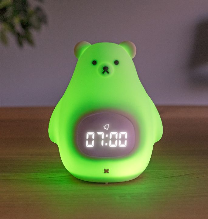 Onze beer slaaptrainer is ideaal om je kleintje al vroeg te leren wanneer het nog geen tijd is om op te staan. Dit doe je door de slaaptrainer functie in te stellen op de gewenste tijd. Het lampje zal dan vanaf een half uurtje voor de ingestelde tijd gaan branden(geel) ten teken dat het bijna tijd is om op te staan, gedurende dit half uur brand het lampje steeds iets feller. Op de ingestelde tijd veranderd de kleur naar groen ten teken dat je kindje uit bed kan komen.