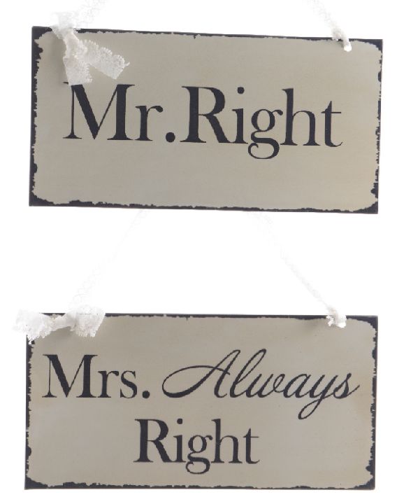 | Dessin: | tekst Mr. Right, tekst Mrs. Always Right |