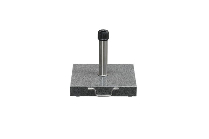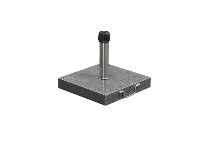 Parasolvoet van hoge kwaliteitDe parasol is doormiddel van de draaibare, kunststof dop vast te zetten in de rvs parasolbuis. Deze natuurstenen parasolvoet heeft verder een fraaie afwerking, doordat de bovenzijde is gepolijst. Tevens is graniet onderhoudsvriendelijk en betrouwbaar.